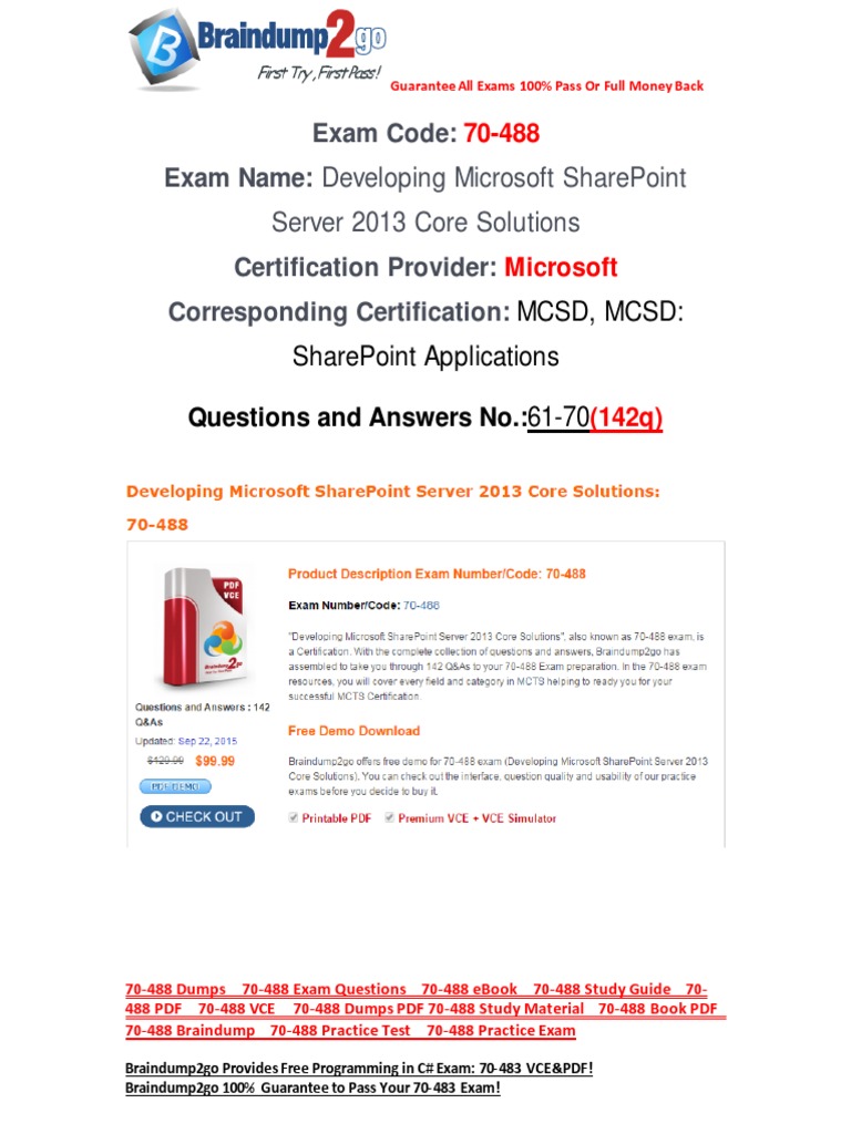 FREE]Braindump2go 70-488 Study Guide Download 91-100 | Share Point ...